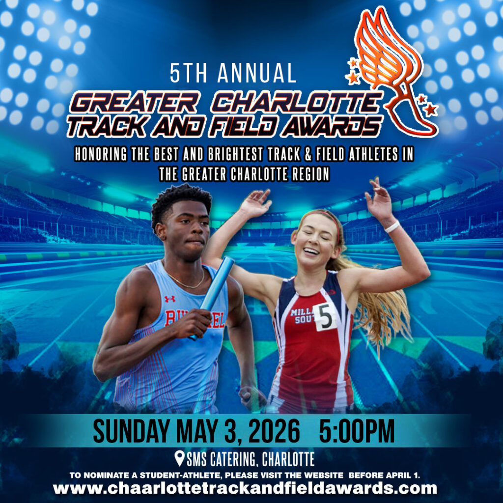 After attracting consecutive sell out crowds of over 400 guests for the for the first four Charlotte Track and Field Awards last year, we are set for year number four. This special event honors track and field and cross-country Student Athletes in the Greater Charlotte Region. Recognizing athletic success, leadership, character and academics are the primary goals of this star-studded event. On May 3rd, the track and field and cross country communities will gather at SMS Catering in Charlotte to honor the best and brightest student athletes that have worked so hard over the last year to achieve success.